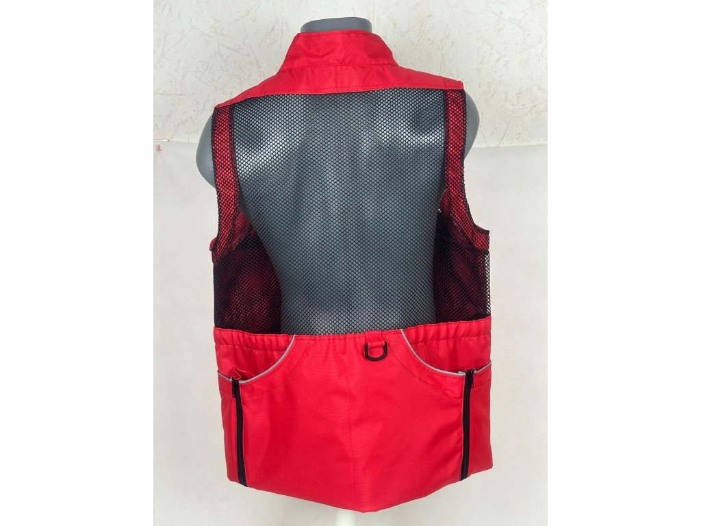Lehká vesta bez rukávů s límcem ze síťoviny.Velké kapsy 2x vpředu, 2x kapsa nahoře,1x velká vzadu s polokroužkem .