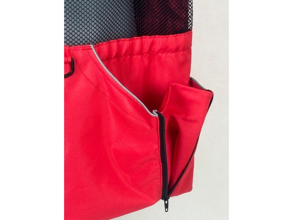 letní ze síťoviny L ČERVENÁ / ROZŠIŘUJÍCÍ KAPSY/