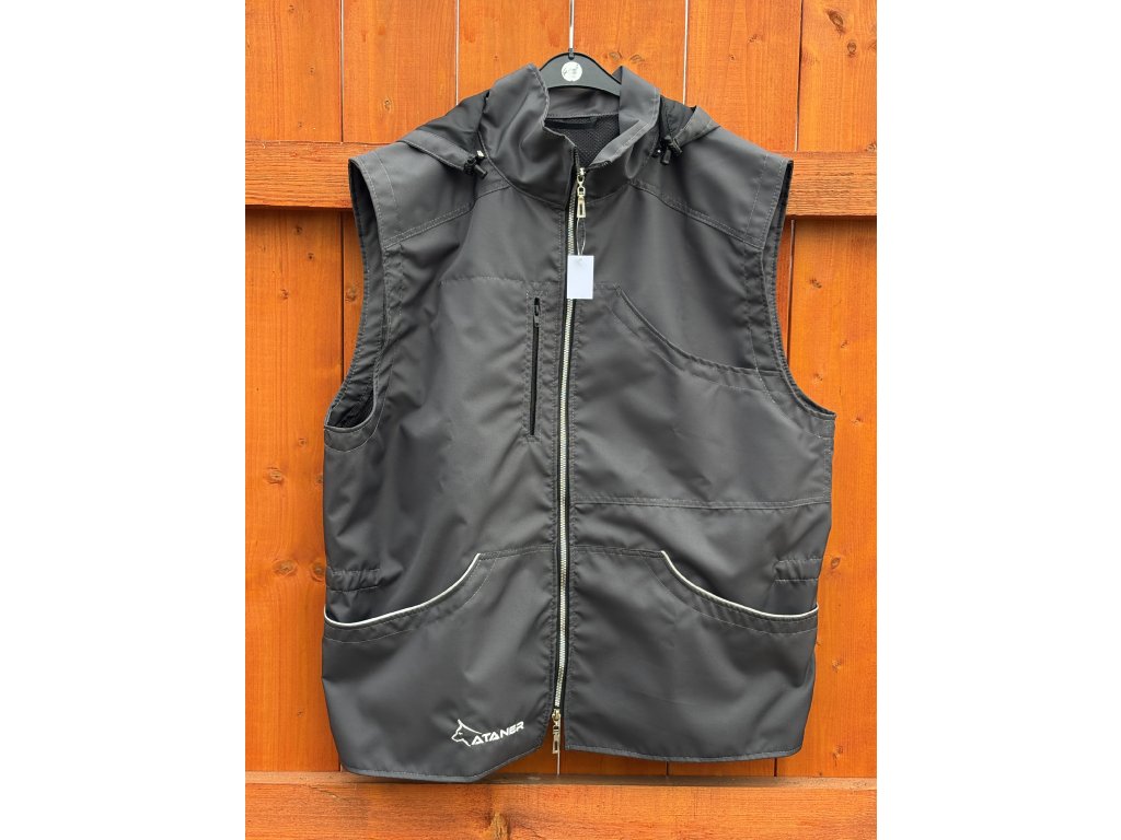 Lehká vesta bez rukávů s límcem a odepínací kapucí.