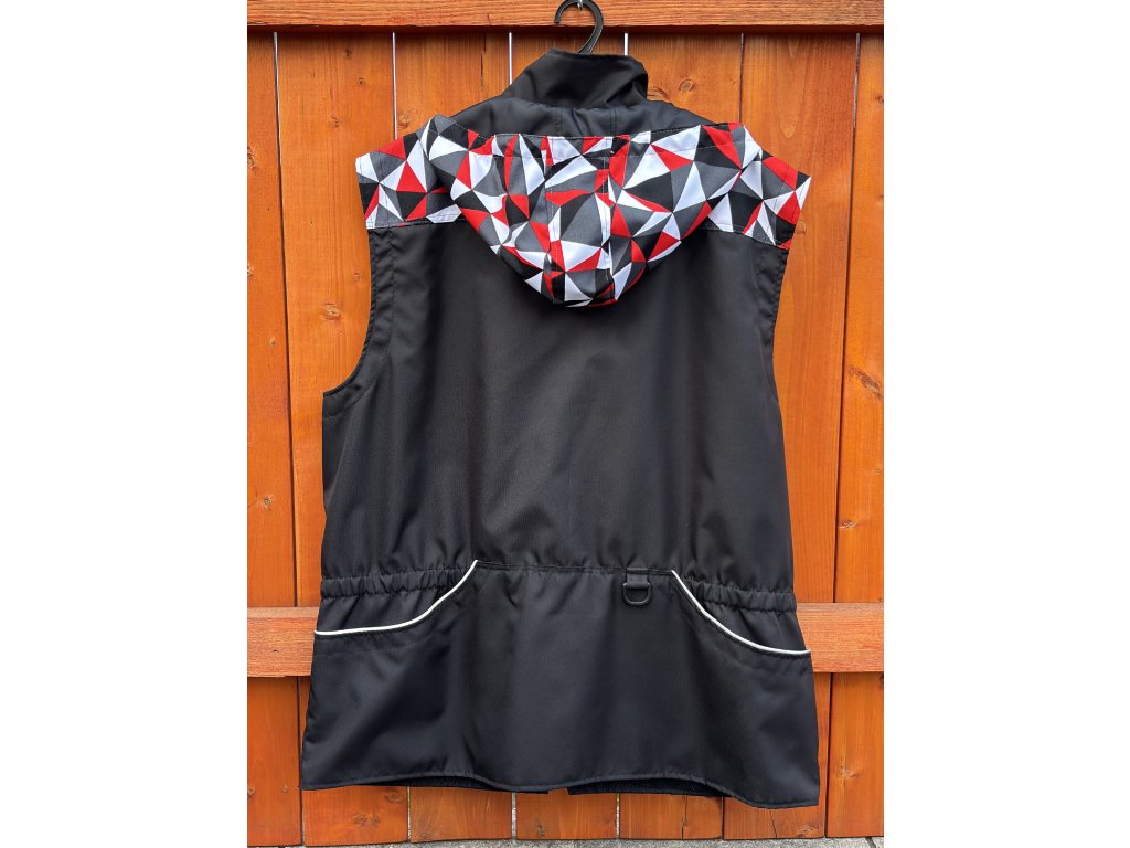 Lehká vesta bez rukávů s límcem a odepínací kapucí.