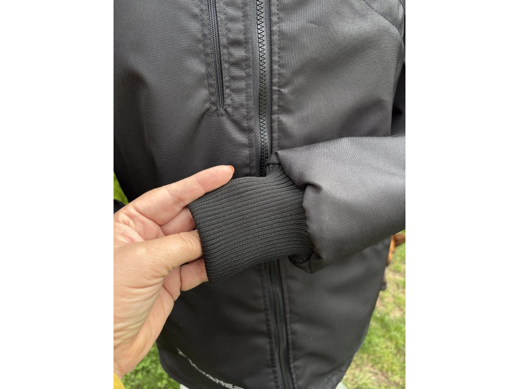 100%PES rubová strana upravená zátěrem umožňuje bundu použít do nepříznivého počasí,ale tento materiál se musí řádně ošetřovat a při praní nepoužívat aviváže. Pro dosažení lepší voděodolnosti je zapotřebí po praní použít inpregnaci na bundy.