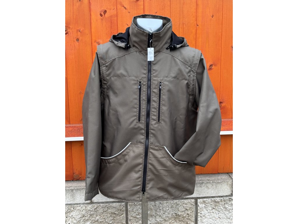 100%PES rubová strana upravená zátěrem umožňuje bundu použít do nepříznivého počasí,ale tento materiál se musí řádně ošetřovat a při praní nepoužívat aviváže. Pro dosažení lepší voděodolnosti je zapotřebí po praní použít inpregnaci na bundy.